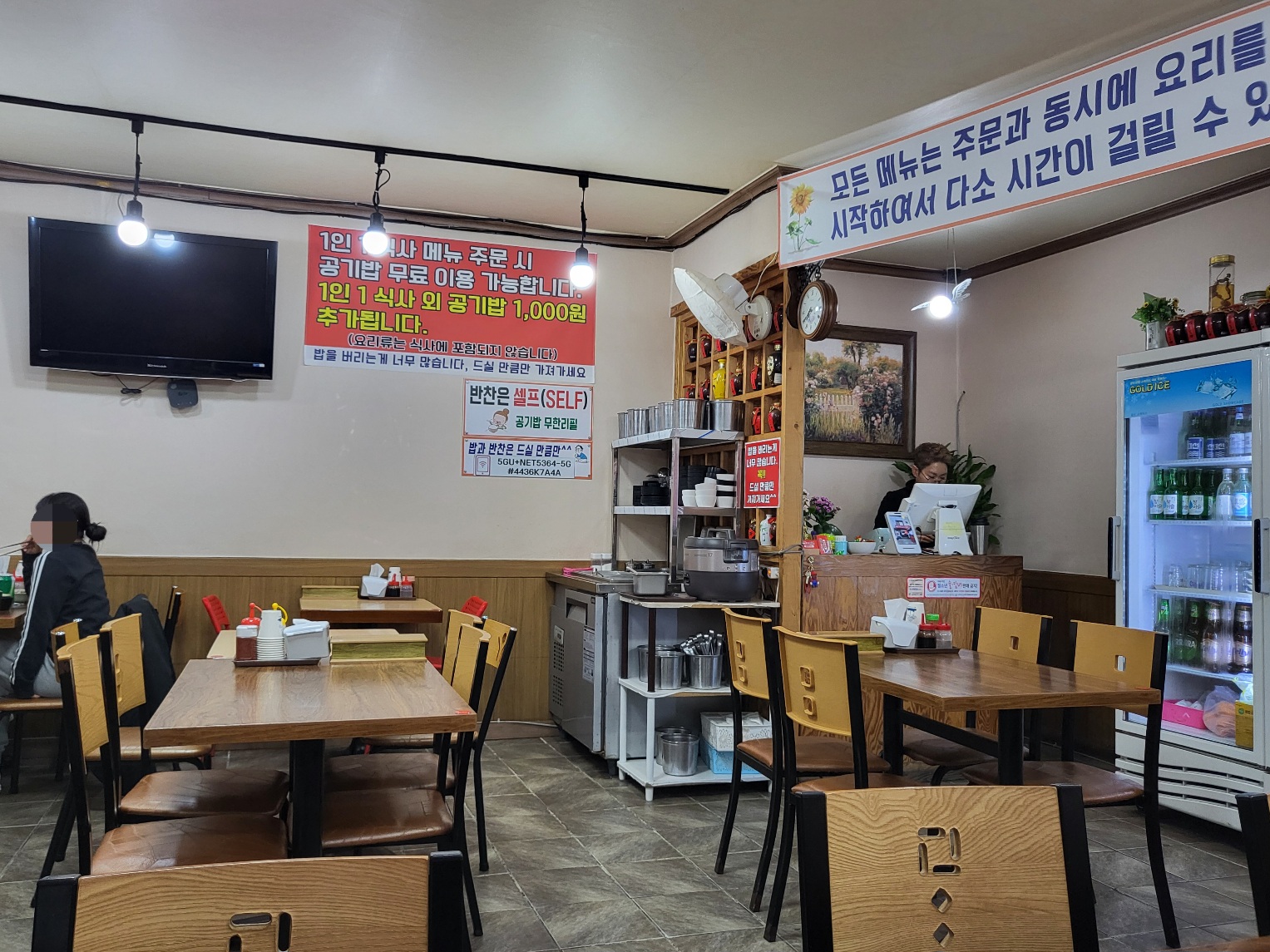 매장은 그렇게 넓지는 않지만 회전율이 좋아 웨이팅이 있더라도 자리가 금방 나요. 오늘은 지난 번 맛있게 먹었던 중화비빔밥과 먹고 싶었던 등뼈 짬뽕, 그리고 아이가 좋아하는 탕수육과 군만두를 주문했습니다. 모든 메뉴가 주문과 동시에 조리를 시작한다고 써져 있는데 음식이 생각보다 굉장히 빨리 나와요. 반찬은 셀프바에서 직접 가져다 먹을 수 있어 편리했습니다.